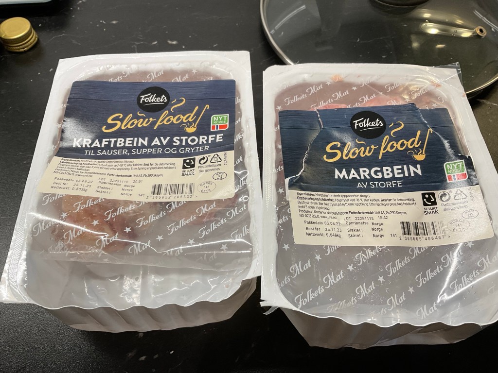 Jag köpte märg och ben av nötkött i mataffär.