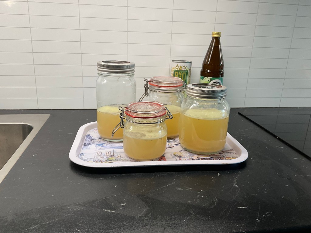 Nu kokar jag benbuljong av kyckling också. Det är så näringsrikt att jag önskar att ha ett bra lager i frysen.